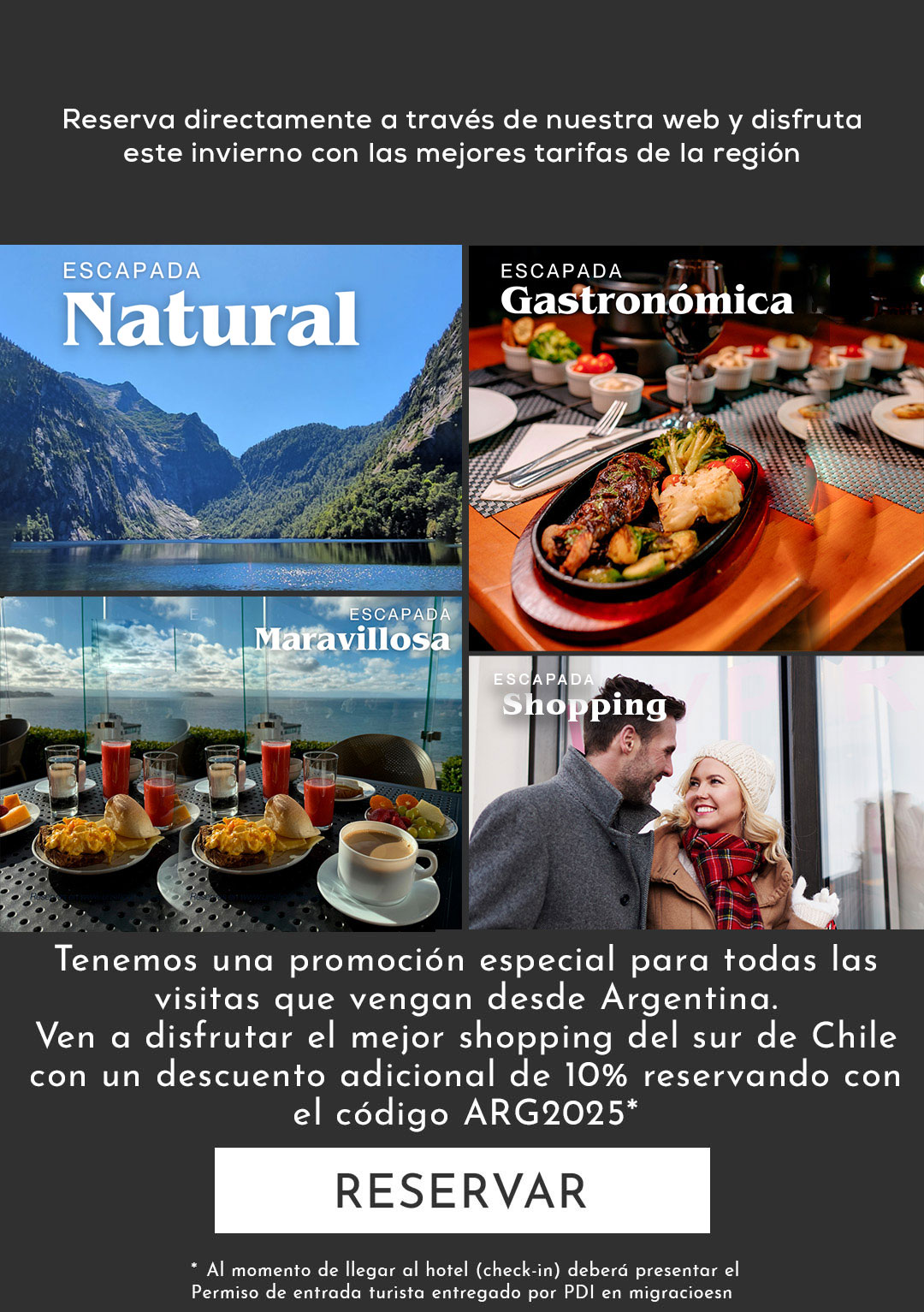 RESERVAR AHORATe invitamos a la capital de la Región de los Lagos con los mejores precios y excelentes paquetes promocionales. Entérate de todas las promociones y eventos que Hotel Gran Pacífico tiene para ti.